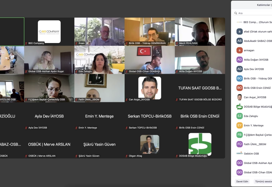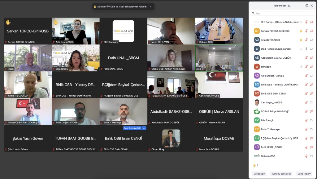 Management representatives from the following organized industrial zones participated in the informational meeting: Tuzla Chemical Industrialists OIZ, Birlik OIZ, Çerkezköy OIZ, Demirtaş OIZ, GEBKİM Kocaeli-Gebze Chemistry Specialized OIZ, Gebze Güzeller OIZ, Global Karma OIZ, and Istanbul Anadolu Yakası OIZ.